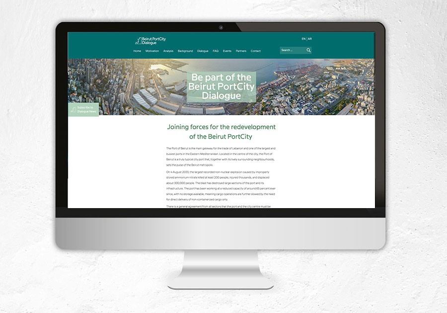 Die Plattform Beirut Port City Dialogue zeigt einen möglichen Wiederbau des Hafen von Beirut, der am 04.08.2020 durch eine Explosion nahezu komplett zerstört wurde.